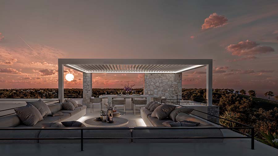 Εγκατάσταση πέργκολας αλουμινίου στις Σποράδες από την εταιρεία Nossis.